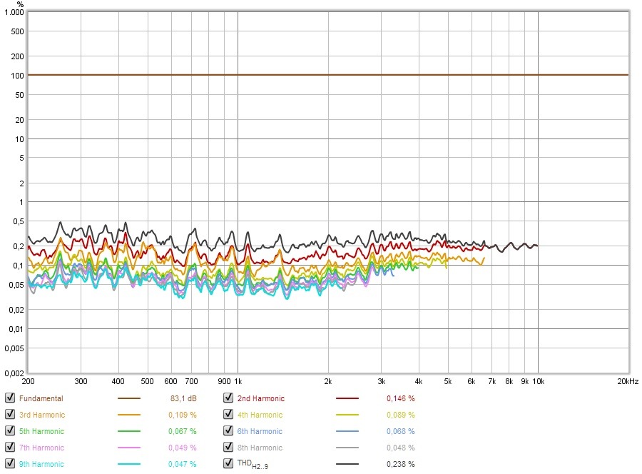 Be aware that outside noise can easily creep into any measurement in my living room. These two pictures are more alike than they are different. A trend can be witnessed after some more extended measurements and use. The Scan Speak 10F/8414G10 is cleaner on the top end while the Vifa/Peerless TC9/FD18-08 has a better performance at the lower end (below about 300 Hz). I wouldn’t dare put the same boost on the low end of the Scan Speak drivers that I used before on the Vifa/Peerless drivers. It would result in having more distortion that could also cause less desirable effects at mid frequencies.